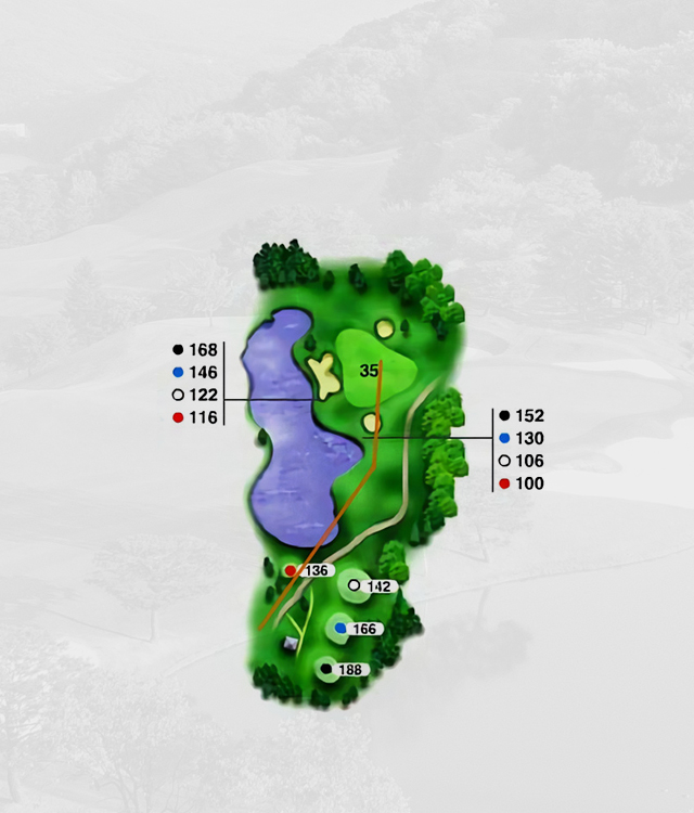 녹색의 정원을 연상시키는 아름다운 비경속에 공략의 비결을 감추고 들어 앉은 홀들이, 유유히 흐르는 호수의 물 길에 싸인채 신비로움을 간직하고 있습니다. 다양한 홀의 전시장을 방불케 하는 9홀마다의 색다른 홀의 표정이 공략의 비밀을 찾아가는 흥미를 더해줍니다.
