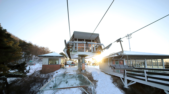 지산 스키장의 리프트는 대기시간의 지루함 없이