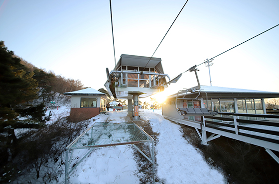 지산 스키장의 리프트는 대기시간의 지루함 없이